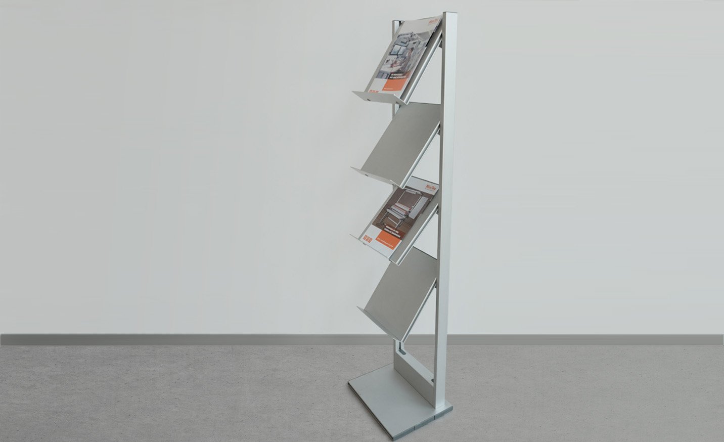 MiniTec brochure stands are quickly put up and introduce order to your information flyers!